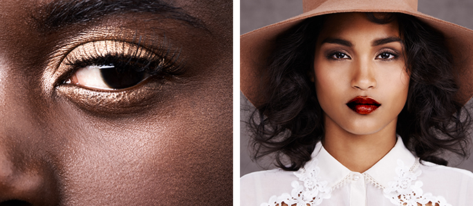 Utiliza: Coloretes anaranjados o fucsias que destacan la piel al máximo. Labios en tonos chocolate para un look neutros o rojizos y morados brillantes para potenciar la boca. Sombras doradas "efecto joya" para las sombras de ojos.